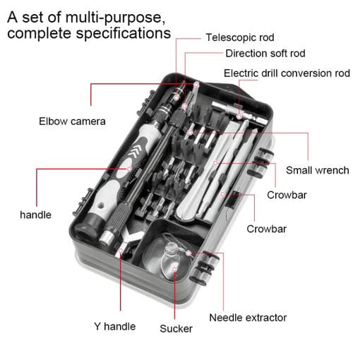 - Conjunto de 138 Piezas en 1, incluye destornilladores y accesorios variados, estuche de polipropileno para almacenamiento y transporte, dimensiones aproximadas 16 x 10.5 x 5.5 cm