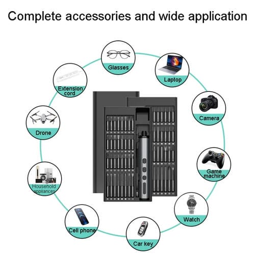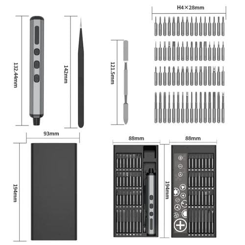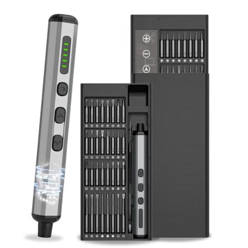 El Juego de Destornilladores Eléctricos 68 en 1 es un Conjunto Portátil y reCargable diseñado para tareas de mantenimiento de precisión en el hogar. Este kit incluye un mango Motorizado con control electrónico de rotación hacia adelante y atrás, equipado con una Batería de litio de 3,7 V y capacidad de 350 mAh que permite hasta 90 minutos de uso continuo. Su diseño incorpora cuatro luces LED para iluminar áreas oscuras durante la operación, y un sistema magnético para asegurar los bits de alta resistencia CR-V, que suman un total de 64 Piezas. Este Juego es compatible con múltiples aplicaciones de reparación, facilitando el trabajo de usuarios que reparan por cuenta propia en dispositivos electrónicos y pequeños aparatos.