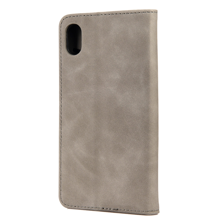 Funda de Cuero para iPhone Xr Siente la Piel Elevando Caja (Gris)