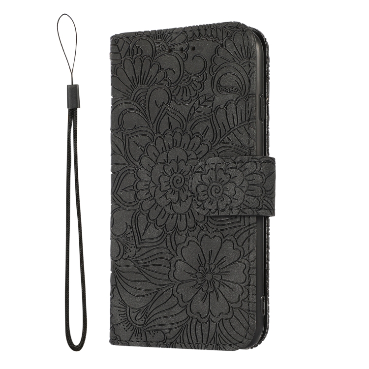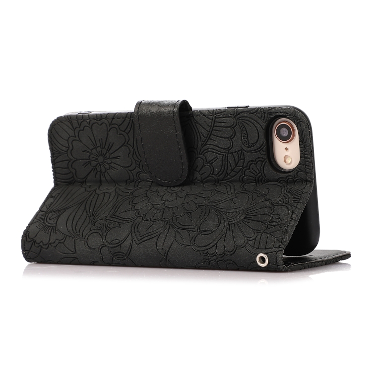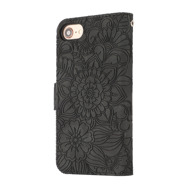 Funda de Cuero Siente la Piel Girasol En Relieve Horizontal con Soporte y Ranuras para Tarjetas y Billetera y Cordón para iPhone 6 / 6S (Negro)