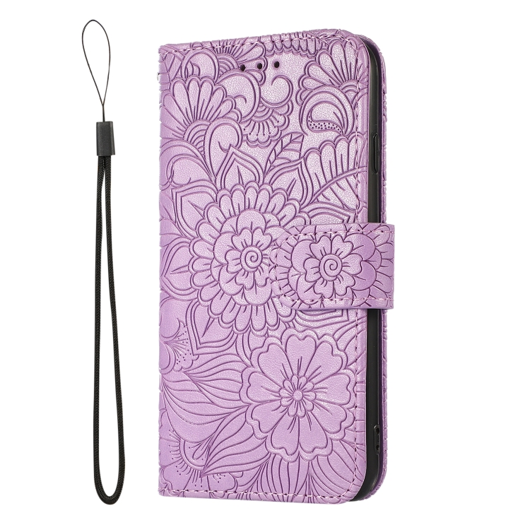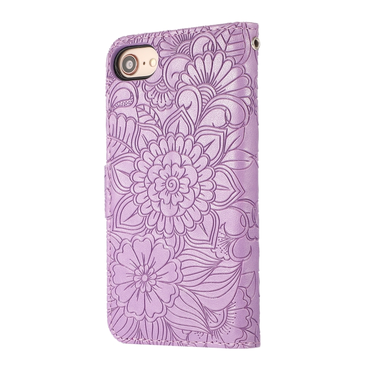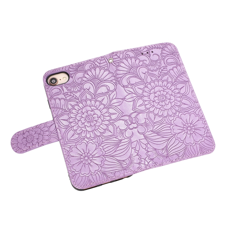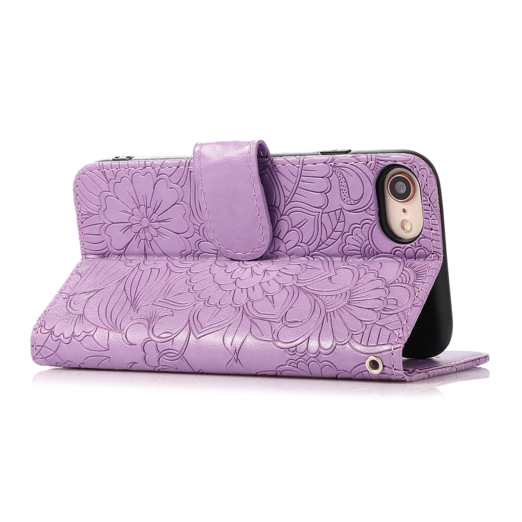 Funda de Cuero Siente la Piel Girasol En Relieve Horizontal con Soporte Ranuras y Cordón para iPhone 6 / 6S (Púrpura)
