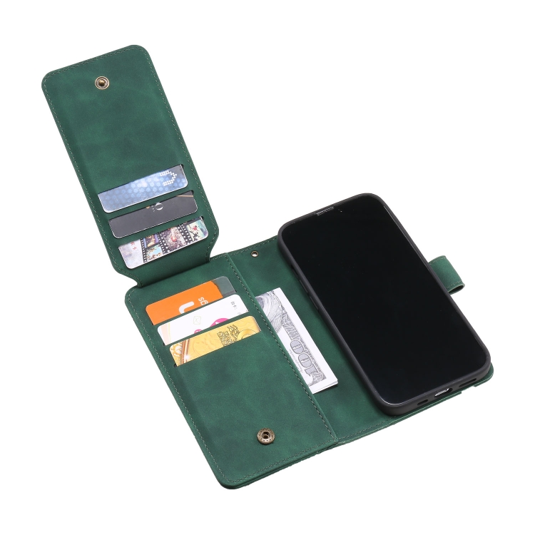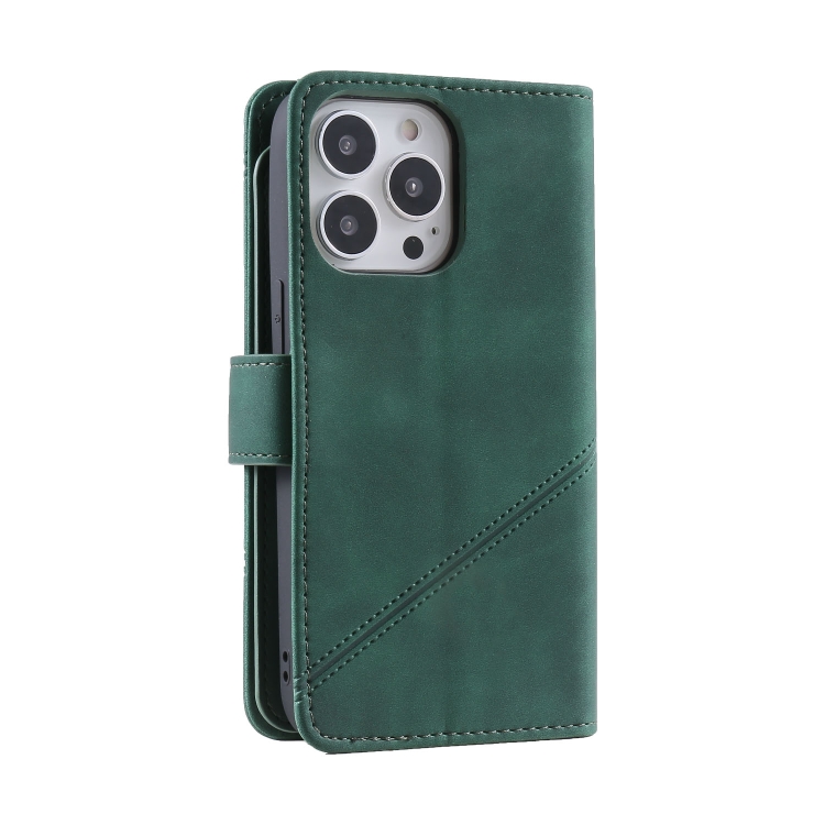 Funda para Teléfono Siente la Piel Horizontal Flip de Cuero iPhone 13 Pro (Green)