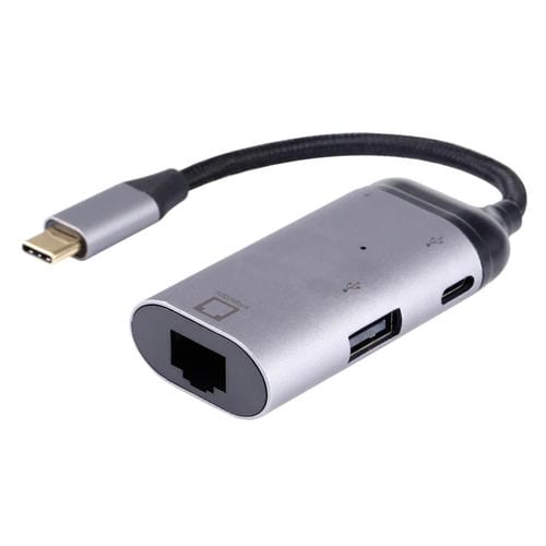 Adaptador Convertidor Tipo-C / USB-C Macho a RJ45 Hembra + USB-C Hembra Femenino USB