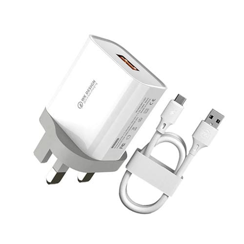 Cargador Wk Wp-U57 Max 18W Maxpeed Qc3.0 Fast Charger con Cable Usb A 8 Pin (Enchufe Reino Unido)