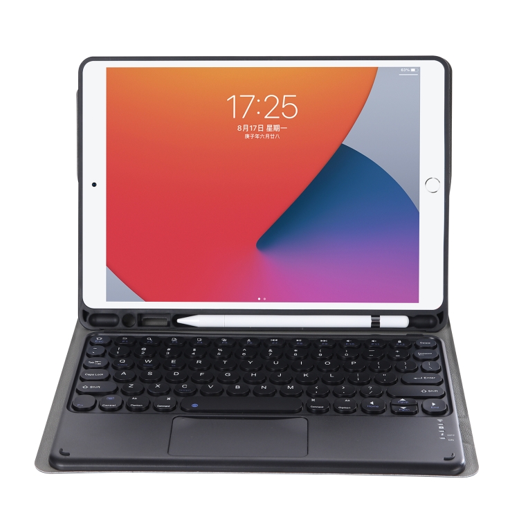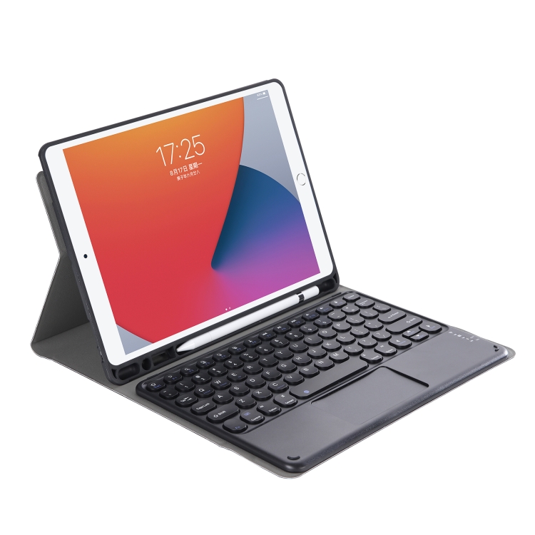 Funda teclado Bluetooth Ya098B-A con control táctil y ranura bolígrafo para iPad 9.7 pulgadas (2018) (Negro)