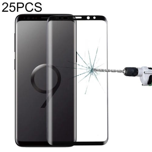 Protector de Pantalla Vidrio Templado Galaxy S9 Plus 9H Borde Curvo 3D HD Antirrayas (Negro) 25 PCs