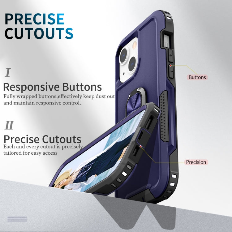 Funda Telefónica 3 En 1 PC y TPU con Soporte de Anillo para iPhone 13 Mini (Azul Marino)