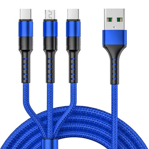 - 1x Cable 3 en 1 USB A Dual Tipo C + Micro USB Carga Rápida 3A (Azul)