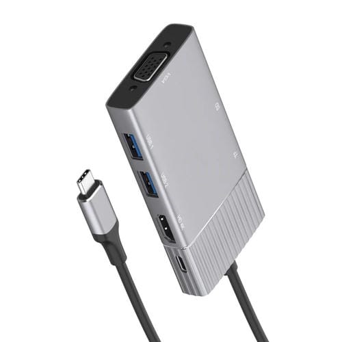 - 1x Adaptador Hub 8 en 1 Tipo C a HDMI, Tipo-C, USB x2, VGA, SD, TF y Audio 3.5mm