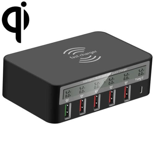 Cargador Multifuncional 818F 50W 5 Puertos USB + Cargador Inalámbrico Magnético Tipo C (Negro)