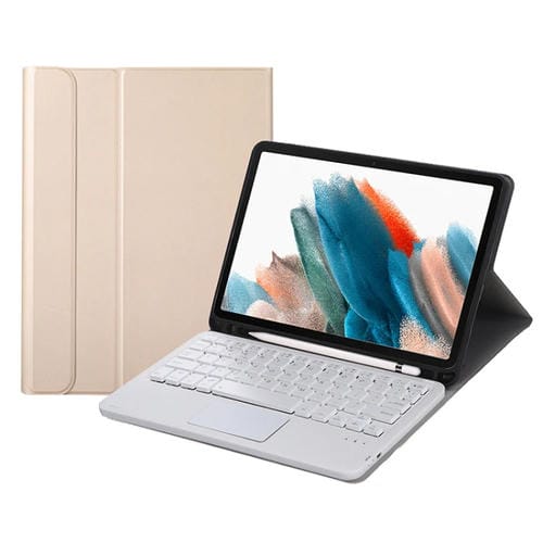 Funda de Cuero con Teclado Bluetooth, Ranura de Lápiz y Touchpad para Samsung Galaxy Tab A8 2021 SM-X205 / SM-X200 (Oro)