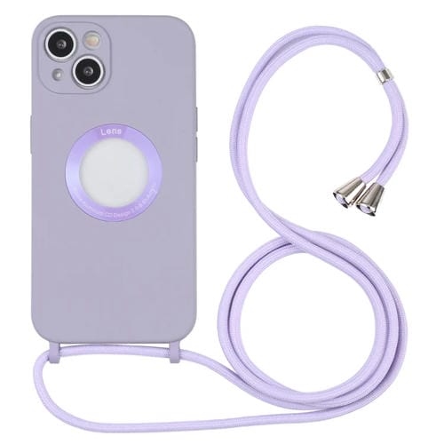 Funda Acrílico Hollow Out con Cordón para iPhone 13 Mini (Púrpura)