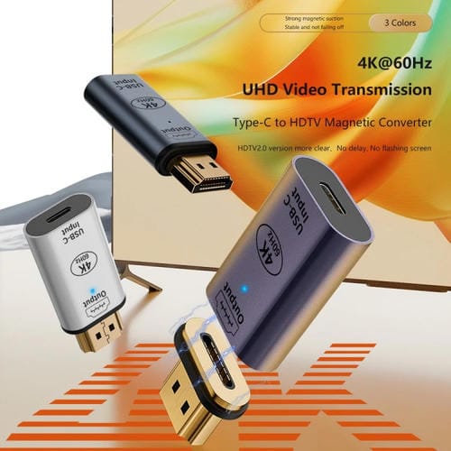 Adaptador Convertidor Tipo C Hembra a HDMI 2.0 Macho 4K 60Hz Enchufe Magnético (Plateado)