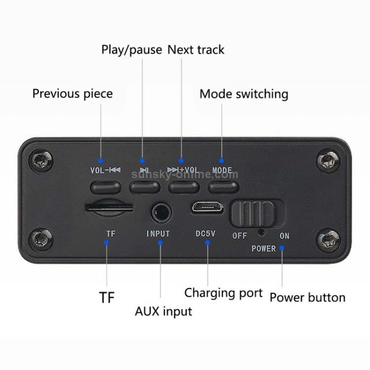 6. Admite conexión inalámbrica bluetooth, reproducción de tarjetas TF, conexión por cable AUX.