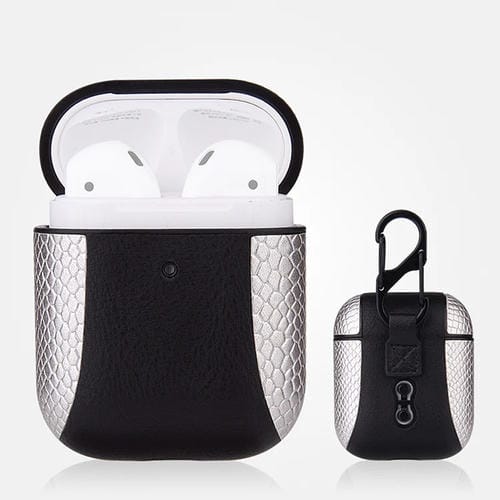 Auriculares abatibles de cuero con estuche protector para Apple AirPods 1/2 (Plateado)