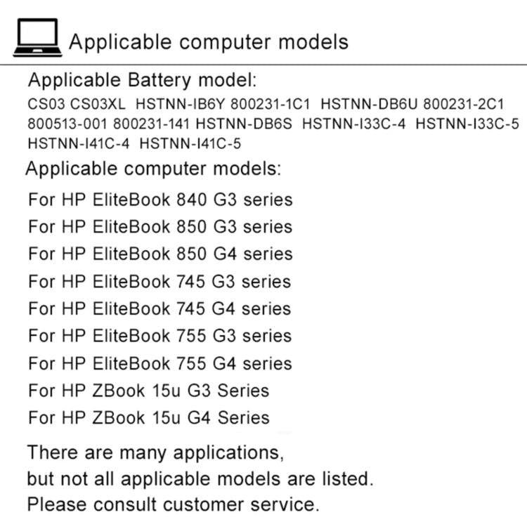 Batería de repuesto CS03XL (3900 mAh) para portátil HP EliteBook 840G3, 848G3 y 840G4
