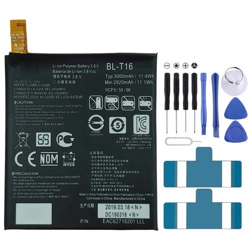 La Batería de iones de litio modelo BL-T16 es un Componente diseñado específicamente para los dispositivos LG G Flex2, compatibles con los modelos H950, H955, H959, LS996 y US995 (2023). Esta Batería proporciona una Fuente de Alimentación estable y eficiente, manteniendo el rendimiento Original del equipo en términos de tiempo de espera y duración de llamadas. Su tecnología de polímero de iones de litio garantiza una vida útil prolongada y elimina el efecto memoria común en Baterías de tecnologías anteriores, asegurando así un funcionamiento fiable y constante para usuarios que reparan por cuenta propia o Técnicos especializados.