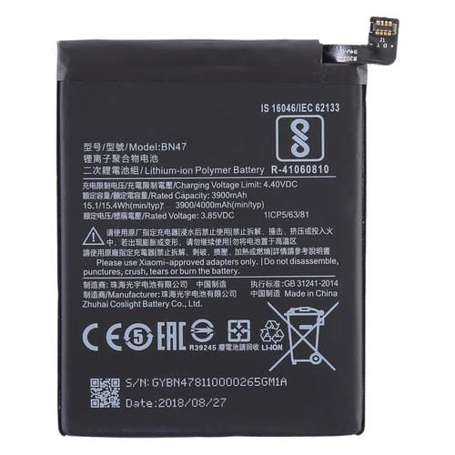 - 1x Batería de polímero de litio 3900mAh BN47 para Xiaomi Redmi 6 Pro (2018)