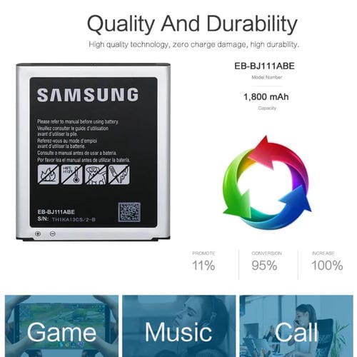 La Batería de polímero de litio EB-BJ111ABE es un componente de reemplazo diseñado específicamente para el Samsung Galaxy J1 Ace. Con una capacidad de 1800mAh, esta Batería garantiza una fuente de energía confiable para mantener el funcionamiento óptimo del dispositivo. Su diseño es compatible con el modelo Samsung Galaxy J1 Ace, asegurando un ajuste preciso y una integración adecuada con el hardware Original. La función principal de esta Batería es proporcionar la energía necesaria para el correcto desempeño del Teléfono Móvil, permitiendo una autonomía adecuada para uso diario. La Batería está fabricada bajo estándares de calidad que aseguran durabilidad y seguridad durante su uso.