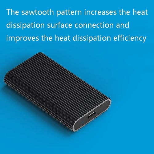 - Interfaz de transmisión Tipo-C USB 3.1 con velocidad de hasta 6 Gbps; indicador LED de actividad; diseño con patrón de sierra para mejorar la disipación de calor; dimensiones 7.9 x 4.4 x 1.2 cm