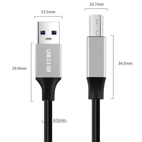 El Cable Adaptador USB 3.0 Macho a USB-B Cuadrado de 0,3 metros está diseñado para facilitar la transmisión de datos entre dispositivos, especialmente impresoras que utilizan la interfaz USB-B. Este Cable permite una Conexión rápida y eficiente, compatible con la mayoría de dispositivos que requieren una interfaz cuadrada USB-B, garantizando una transferencia estable y de alta velocidad gracias a su tecnología USB 3.0. Su diseño plug and play elimina la necesidad de instalar controladores Adicionales, lo que simplifica su uso tanto para profesionales como para usuarios que realizan reparaciones o conexiones por cuenta propia.