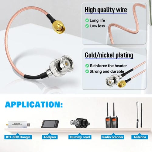 El Cable Adaptador RF coaxial RG316 con Conectores Macho SMA a Macho BNC de 30 cm es un componente diseñado para la transmisión eficiente de Señales de radiofrecuencia en aplicaciones profesionales y Técnicas. Este Cable es compatible con dispositivos que requieren una impedancia de 50 ohmios, como Antenas, Cables coaxiales, escáneres de radio, dongles SDR, analizadores de espectro, osciloscopios y generadores de Señales. Su construcción con Cable RG316 garantiza baja pérdida y alta resistencia a interferencias, siendo Flexible y compacto para facilitar su manejo y adaptación según las necesidades del usuario.