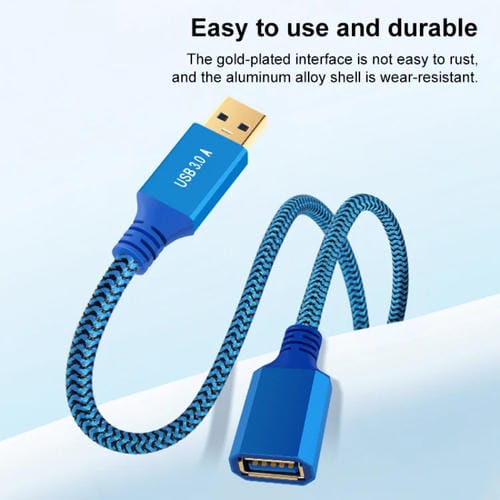 - 1x Cable de Extensión USB 3.0 Macho a Hembra para Impresora y Disco Duro, 0,3 m (Azul)