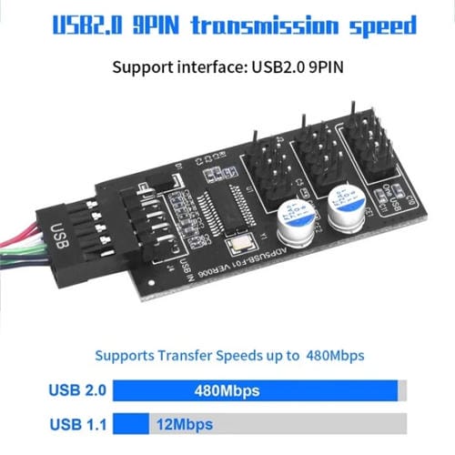 - 1x Cable de Extensión YNS-02 Adaptador USB 2.0 de 9 Pines a 3 x 9 Pines para Placa Base