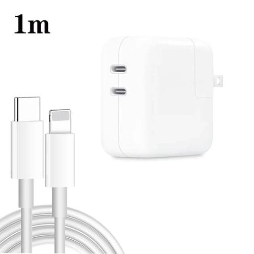 Cargador 35 W PD3.0 USB-C Tipo-C doble puerto con cable Tipo C a 8 pines (Blanco)