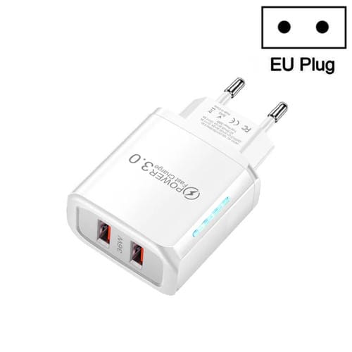 Cargador móvil USB QC3.0 puerto dual 36 W salida dual 18 W enchufe UE (Blanco)