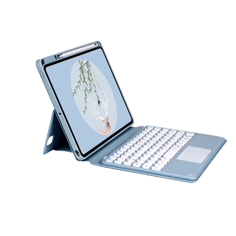 Case de Cuero Teclado Bluetooth con Panel Táctil Estuche Rotativo para iPad 10.2 (2021) (Azul Niebla)