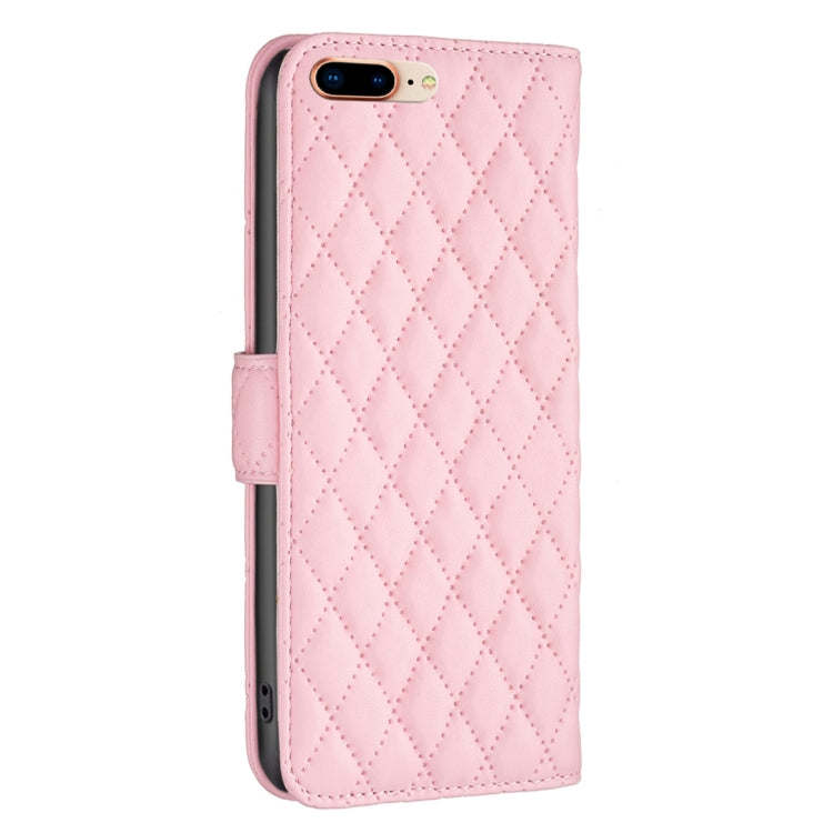 Case de Teléfono Billetera Cuero Celosía Diamantes iPhone 8 Plus (Rosa)