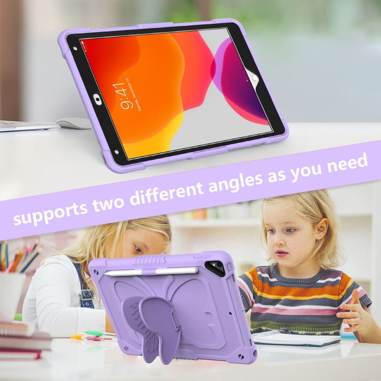 Funda Protectora + Soporte Mariposa + Ranura Bolígrafo para iPad 10.2 2021 2020 2019 Air 3 10.5 (Púrpura Claro)