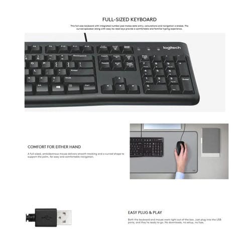 Conjunto de teclado y ratón con cable Logitech MK120 (negro)