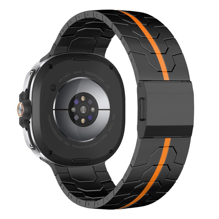 Correa de acero inoxidable con cierre magnético para Samsung Galaxy Watch8/Watch8 Classic (negro y naranja)