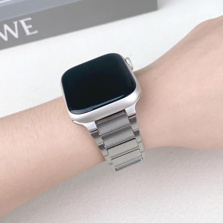 Correa de acero inoxidable con hebilla lateral desmontable y tres cuentas para Apple Watch de 46 mm, 49 mm, 45 mm y 44 mm (plateada)