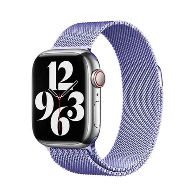 Correa de acero inoxidable milanesa con película curva 3D para Apple Watch Series 44 mm (morado claro)