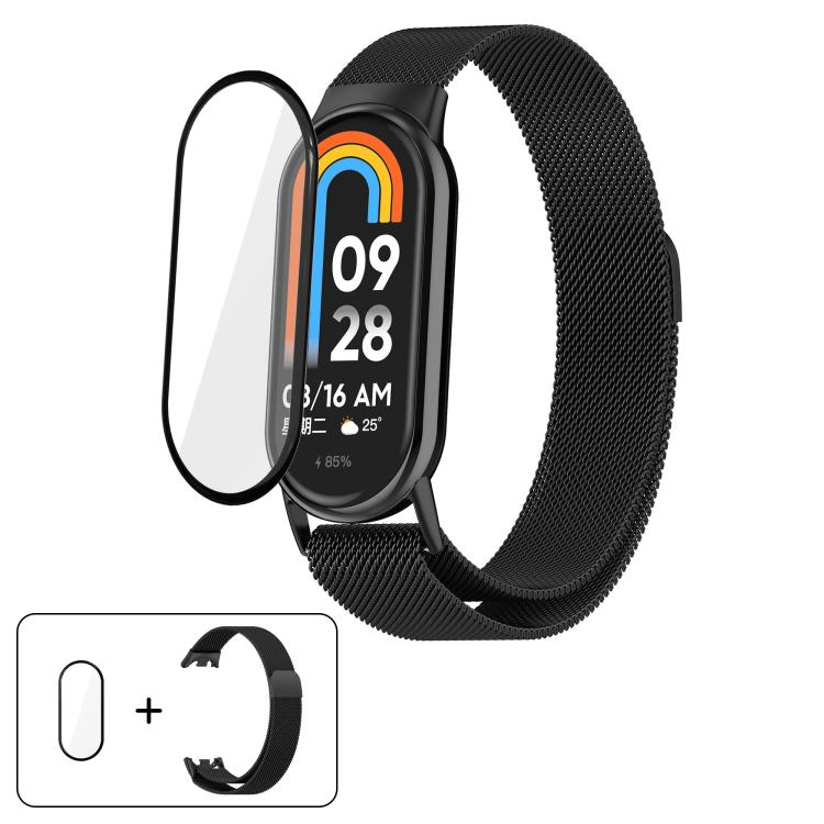 Correa de acero inoxidable milanesa con película curva 3D para Xiaomi Smart Band 9/9 NFC (negra)