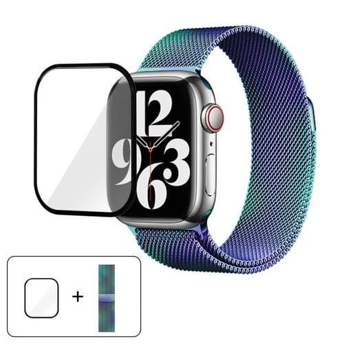 Correa de acero inoxidable milanesa para Apple Watch Series 42 mm con película curva 3D (colorida)