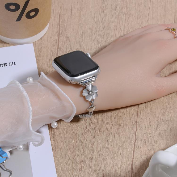 Correa de aleación con trébol de cuatro hojas para Apple Watch de 46 mm, 49 mm, 45 mm y 44 mm (plata + trébol de cuatro hojas plateado)