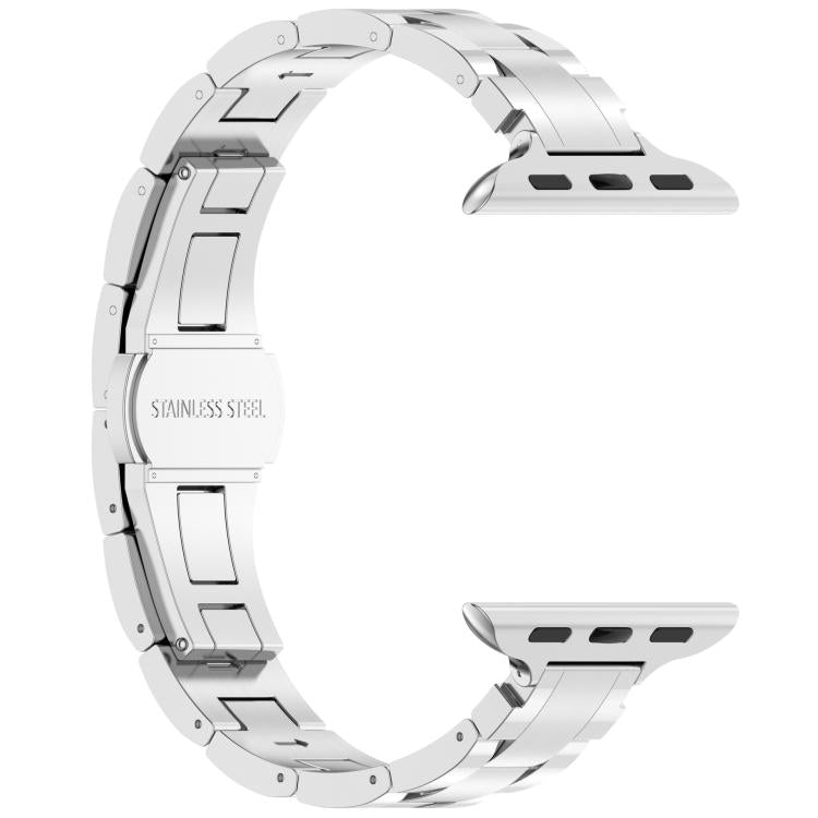 Correa de aleación de titanio con hebilla de mariposa de tres cuentas para Apple Watch de 46 mm / 49 mm / 45 mm / 44 mm (con separador plateado).