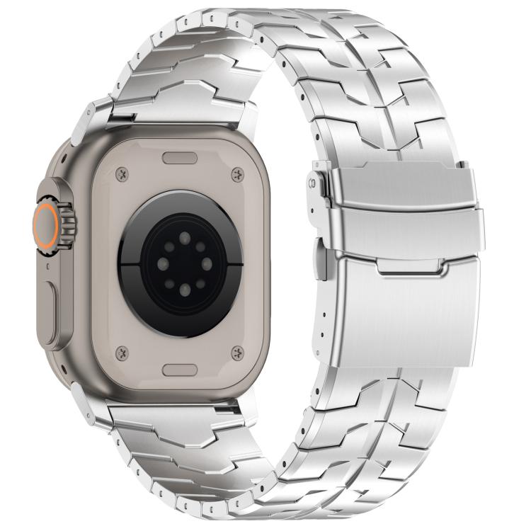 Correa de aleación de titanio con hebilla plana de liberación rápida para Apple Watch de 46 mm, 49 mm, 45 mm, 44 mm y 26 mm (plateada)