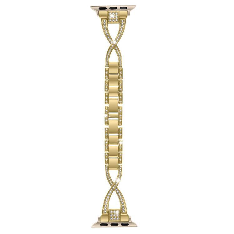 Correa de aleación de zinc con diamantes cruzados para Apple Watch de 46 mm, 49 mm, 45 mm y 44 mm (dorada)