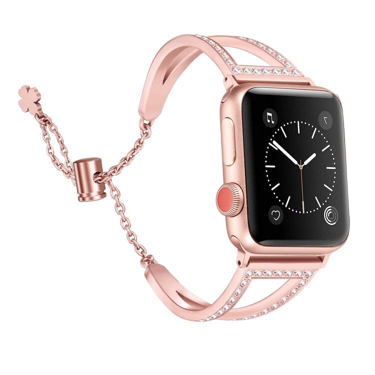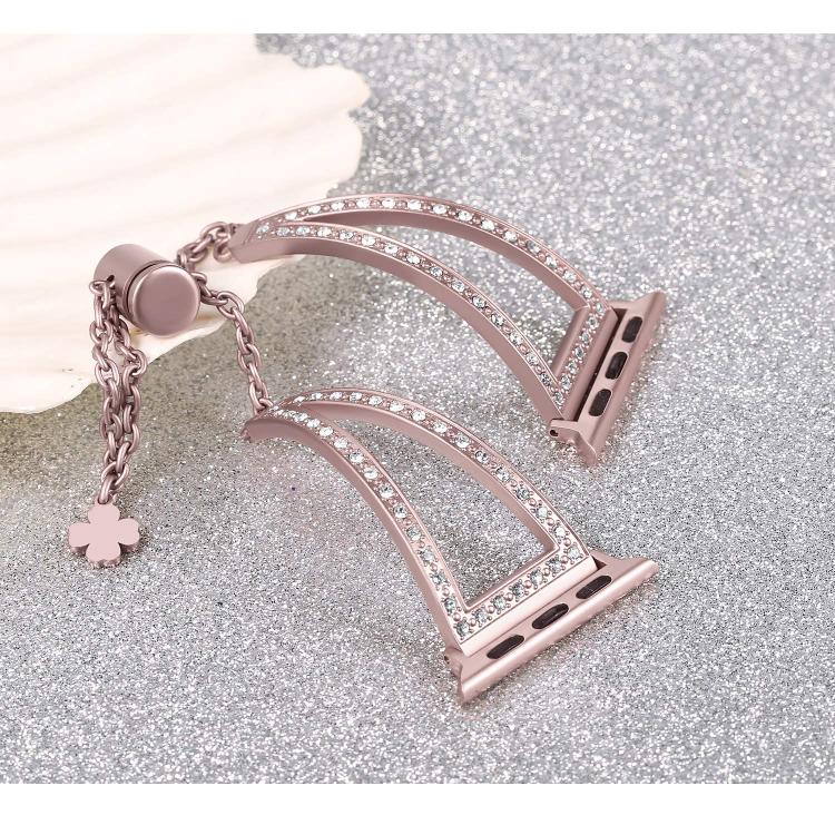 Correa de aleación de zinc con diamantes en forma de V para Apple Watch de 46 mm, 49 mm, 45 mm y 44 mm (rosa)
