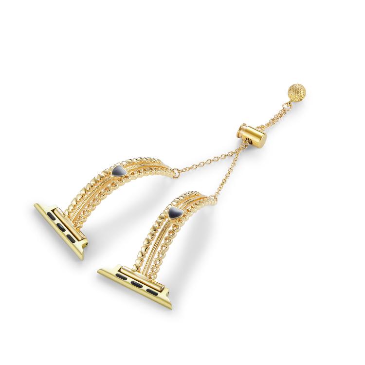 Correa de aleación de zinc con diseño de piedra blanca y amor para Apple Watch de 46 mm, 49 mm, 45 mm y 44 mm (dorada)