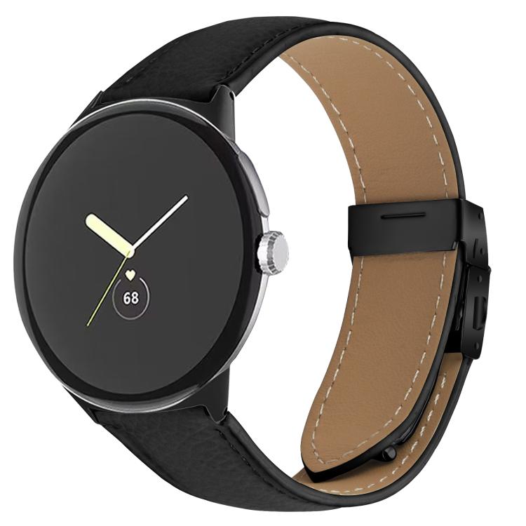 Correa de cuero con hebilla de caparazón de tortuga negra con textura de lichi de 41 mm para Google Pixel Watch 4 / 3 / 2 / 1 (negra)