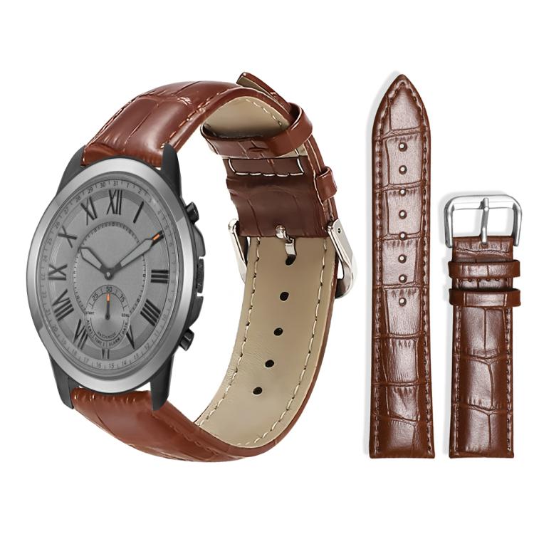 Correa de cuero con hebilla de pasador y textura de bambú para reloj Fossil Q Machine Hybrid de 24 mm (marrón oscuro)