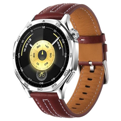 Correa de cuero con hebilla plateada para Huawei Watch GT 6 de 46 mm (rojo vino)