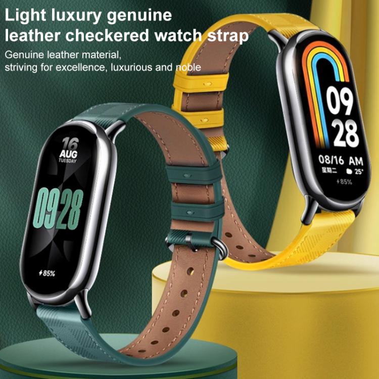 Correa de cuero con textura a cuadros xDfind para Xiaomi Smart Band 10/9/8 (marrón oscuro)