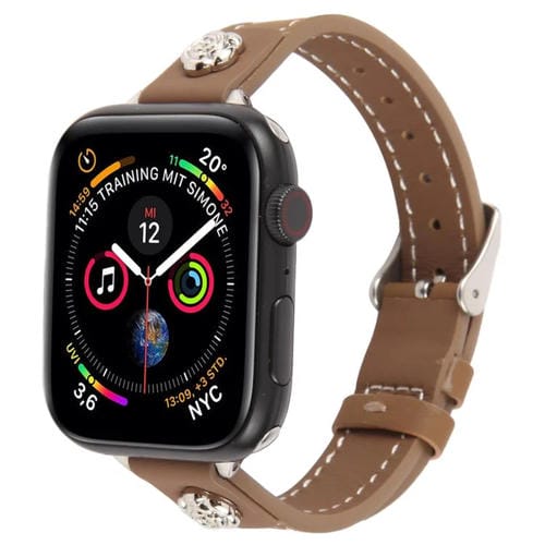 Correa de cuero de microfibra con remaches en color camelia para Apple Watch de 42 mm, 41 mm, 40 mm y 38 mm (marrón oscuro)